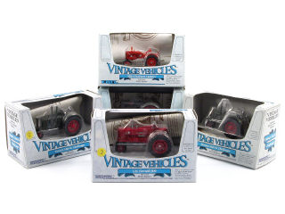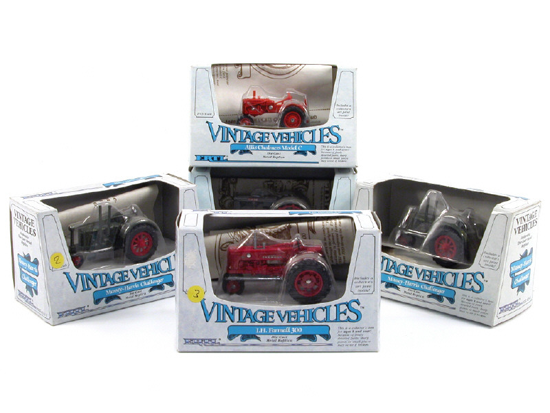 échelle 1/43ème - série 'VINTAGE VEHICLES' - miniatures reproduisant les modèles : CASE, ALLIS CHALMERS, MASSEY HARRIS & FARMALL - une boîte en état 'c' - on y joint une boîte vide de la série