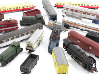 états de 'C' à 'F' - comprend : 5 motrices, un autorail double, une locomotive vapeur avec tender, 3 voitures de voyageurs & 11 wagons - on y retrouve notamment les marques : JOUEF, GEGE & LIMA