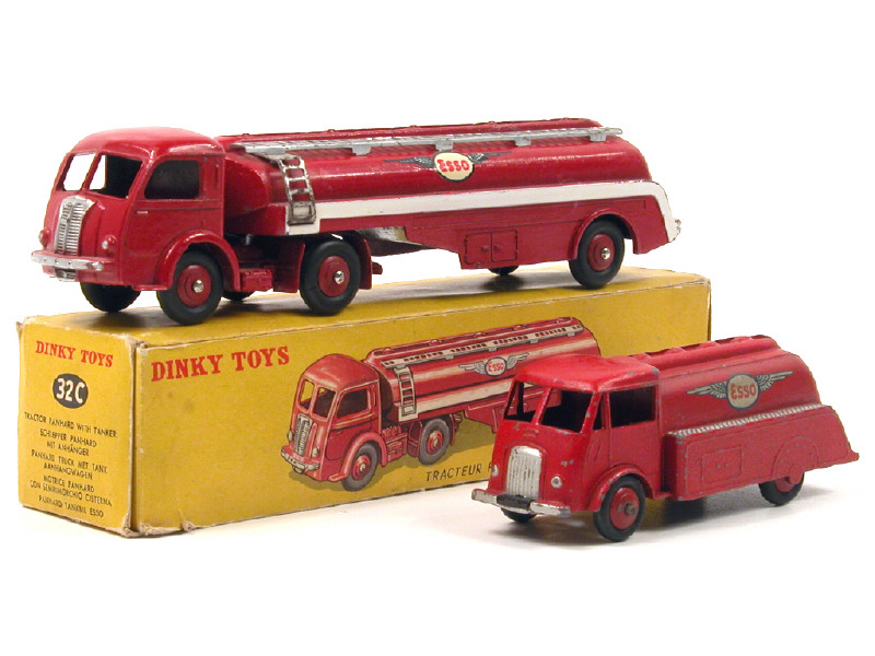 DINKY TOYS (FRANCE) 32C PANHARD Semi-remorque citerne 'ESSO' (version avec jantes convexes) rouge (décalques 'petites ailes')
