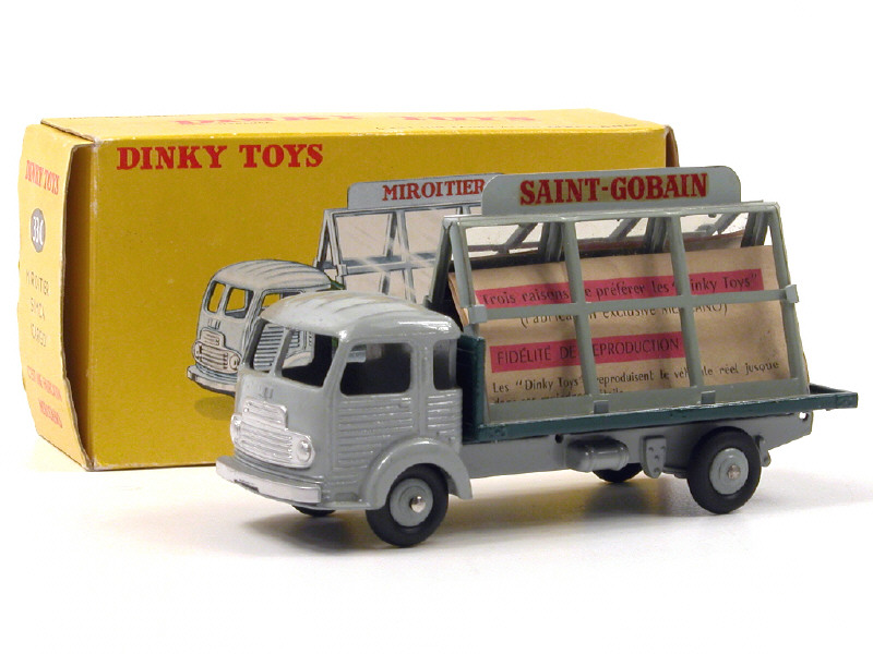 DINKY TOYS (FRANCE) 33C SIMCA CARGO Miroitier 'SAINT GOBAIN' (version avec jantes convexes) gris, plateau vert foncé & jantes grises