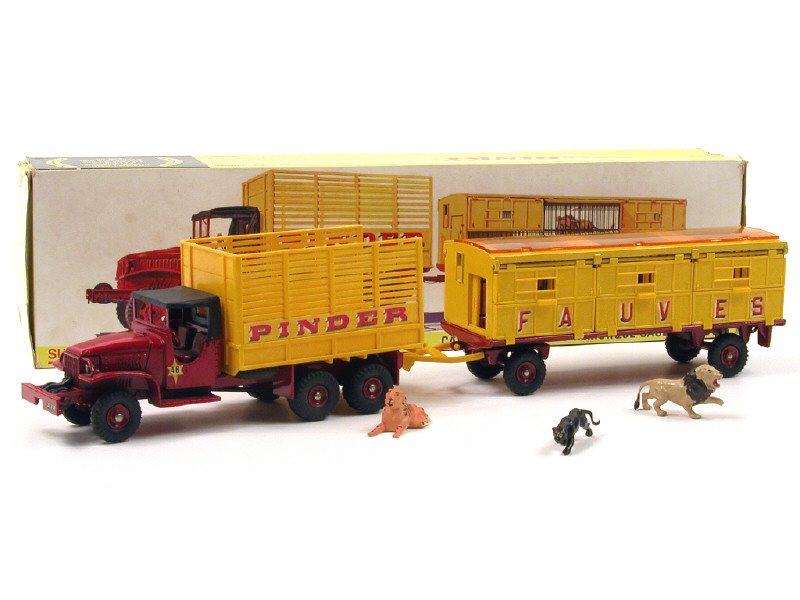 DINKY TOYS (FRANCE) 881 GMC 'PINDER' avec remorque-cage à fauves rouge & jaune