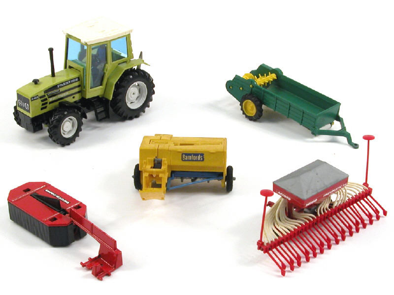comprend : un tracteur HÜRLIMANN H468 PRESTIGE, une remorque d'épandage à fumier (entourage de jantes très légèrement fondu), une faucheuse DEUTZ-FAHR, une presse BAMFORDS BL58 & un semoir ACCORD
