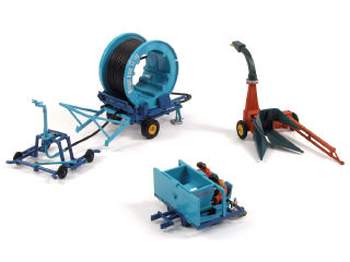 comprend : une planteuse SMALLFORD (avec 2 figurines), une ensileuse HARVESTER & un rouleau d'irrigation ST110