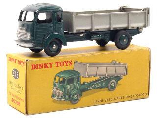 DINKY TOYS (FRANCE) 33B SIMCA CARGO Benne basculante vert foncé, benne gris métal (intérieur strié)