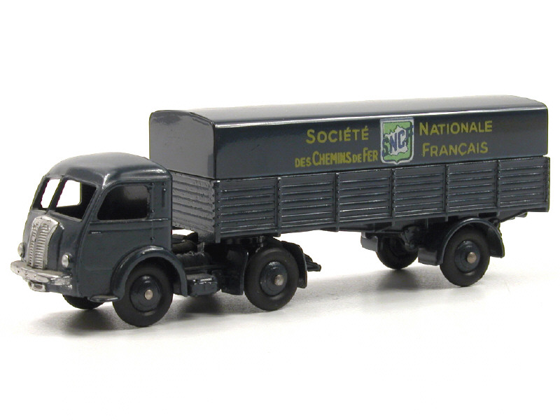 DINKY TOYS (FRANCE) 32AB PANHARD Semi-remorque 'S.N.C.F' (version avec intérieur de toit lisse) bleu foncé (fond de l'écusson uni)