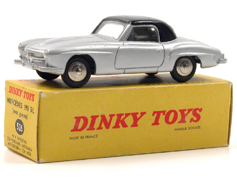 DINKY TOYS (FRANCE) 526 MERCEDES 190 SL (version avec vitres & jantes convexes) gris métal, toit noir