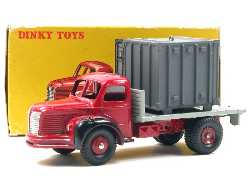 DINKY TOYS (FRANCE) 34B BERLIET Plateau avec container (version avec goupille) rouge, plateau gris clair