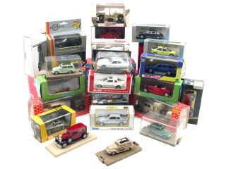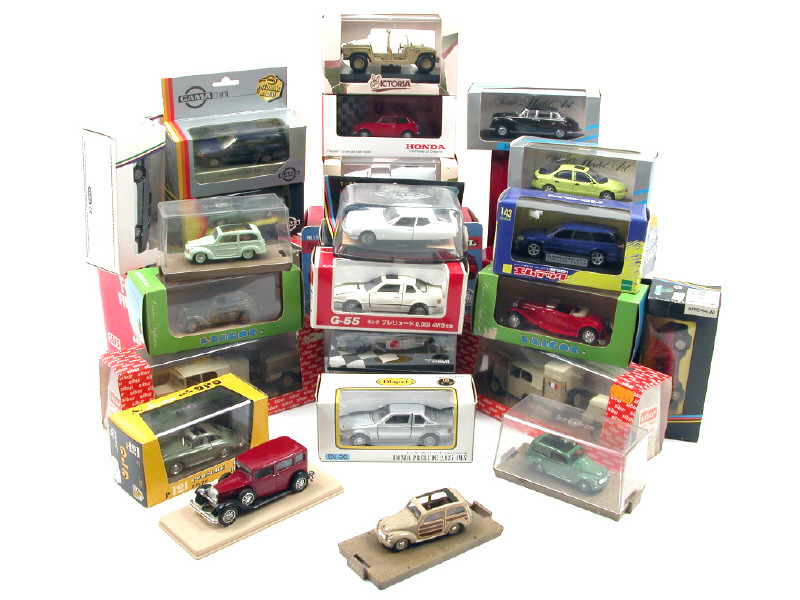 miniatures reproduisant les modèles : ROLLS ROYCE, BAR HONDA, FIAT, MG, SUBARU, OPEL, BMW, FORD, CITROËN, PONTIAC, PORSCHE, AUDI, VOLKSWAGEN, DELAGE, RENAULT, HUMMER & GMC - on y retrouve les marques : ELIGOR, MINICHAMPS, BRUMM, JOUEF EVOLUTION, MTECH, POLISTIL, YONEZAWA DIAPET, GAMA, SCHABAK, PILEN, ERTL, EBBRO, VICTORIA, SOLIDO & SIBUR - 2 véhicules à l'échelle 1/25ème