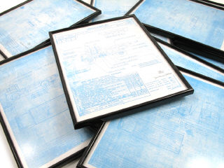 13 encadrés sous verre (un verre cassé) - plans représentant les modèles : GUY van, LAND ROVER 'MERSEY TUNNEL', EUCLID TEREX (2), COVENTRY CLIMAX chariot à fourche, char CENTURION, camion d'armée 10T, camion d'artillerie médium, camion-citerne d'aviation, WESTLAND SIKORSKY hélicoptère, side-car RAC, FIAT 600, LEYLAND COMET, FODEN citerne 'MOBILGAS', BEDFORD benne à ordures, bus BOAC, STUDEBAKER PRESIDENT, GUY WARRIOR 4T, GUY WARRIOR plateau, BEDFORD van 'OVALTINE' & 'KODAK', PACKARD CLIPPER, MG MIDGET (2), DODGE ROYAL SEDAN, DE SOTO FIREFLITE, BEDFORD militaire 3T, HUDSON HORNET & GUY WARRIOR plateau avec dosseret arrière (modèle jamais commercialisé)