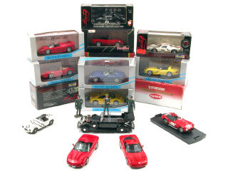 miniatures reproduisant les modèles : AC, CHEVROLET, MERCEDES, FERRARI, DODGE & FORD - on y retrouve les marques : BANG, MINICHAMPS, DETAILCARS, KYOSHO & RIO - on y joint 3 figurines du IIIème Reich dont Adolf HITLER de la marque STARLUX