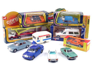 CORGI TOYS (GB) Ensemble de 8 voitures, un camion & une caravane