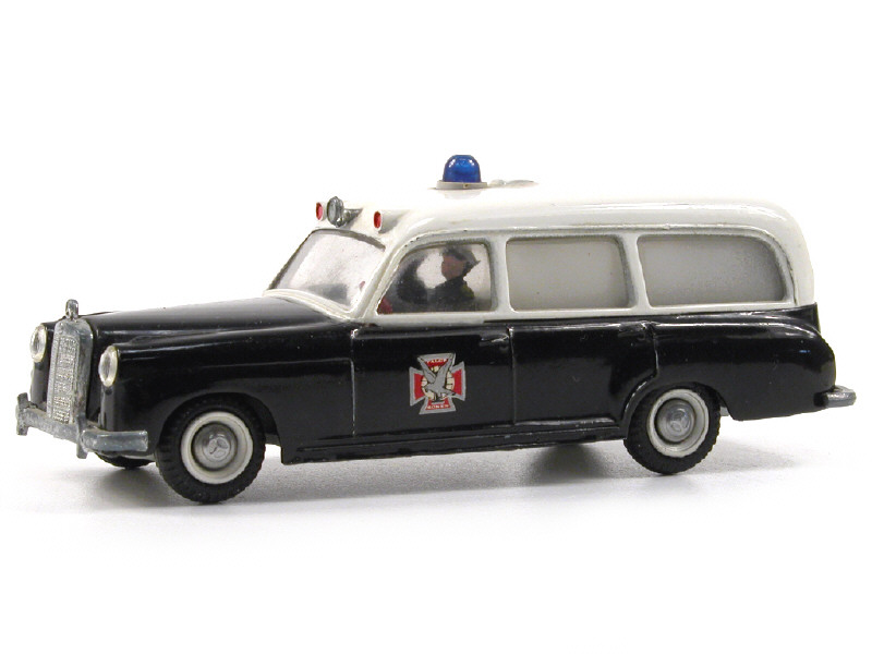 TEKNO (DANEMARK) 730 MERCEDES 220 S Ambulance 'FALCK ZONEN' 1957 noir & blanc