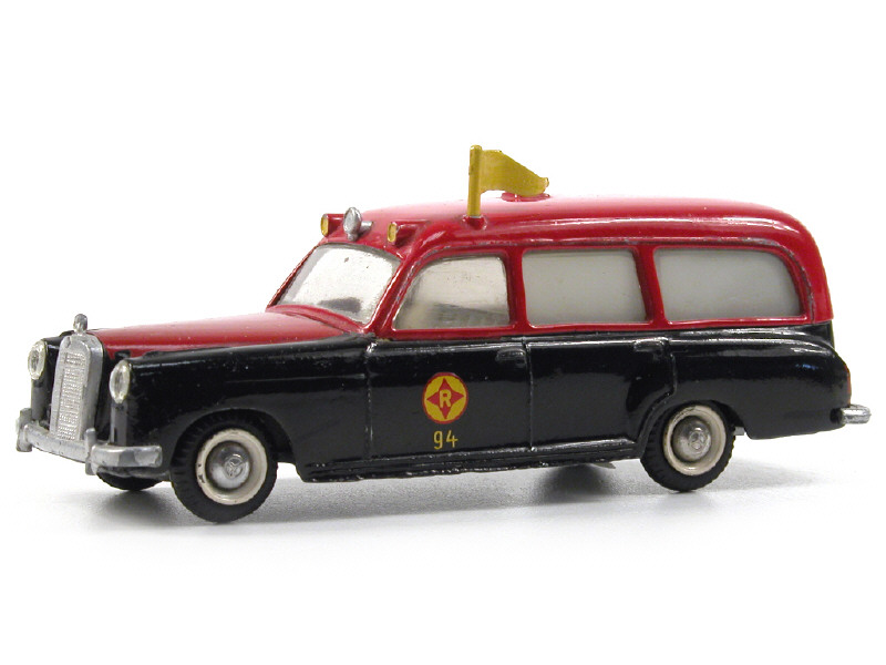 TEKNO (DANEMARK) 733 MERCEDES 220 S Ambulance 1957 noir, toit rouge