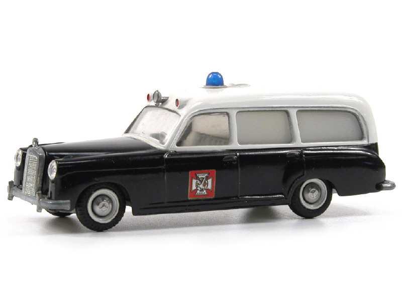 TEKNO (DANEMARK) 730 MERCEDES 220 S Ambulance 'FALCK ZONEN' 1957 noir & blanc