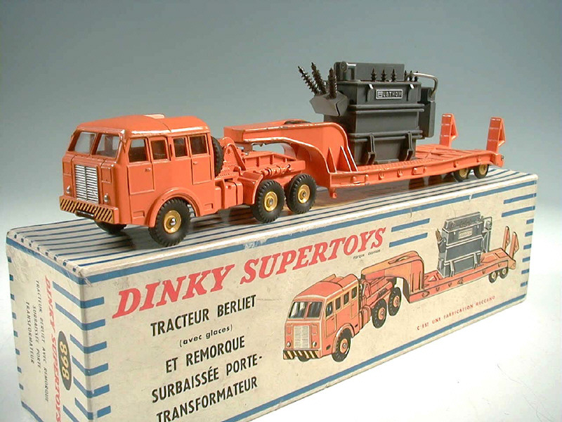 DINKY TOYS (FRANCE) 898 BERLIET Semi-remorque plateau porte-transformateur (version avec jantes de remorque convexes) orange