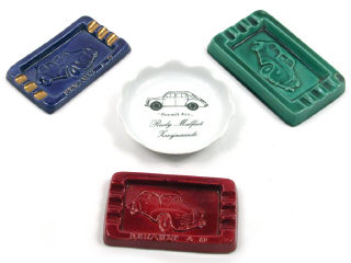 OBJETS PUBLICITAIRES Ensemble de 4 cendriers représentant des RENAULT 4 CV bleu, vert, rouge & blanc