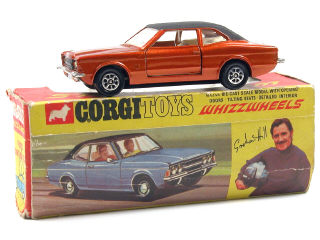 CORGI TOYS (GB) 313 FORD CORTINA GXL de Graham Hill cuivre métal, toit vinyle noir mat