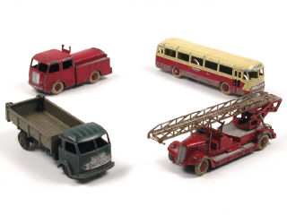 DINKY TOYS (FRANCE) Ensemble de 3 camions & un autocar