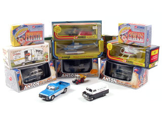 miniatures reproduisant notamment les modèles : BEDFORD, LINCOLN, FORD, CADILLAC, MAZDA, MERCEDES, HUGUES & BELL - on y retrouve les marques : CORGI TOYS, ANSON, WIKING & KOVAP - un modèle sans boîte