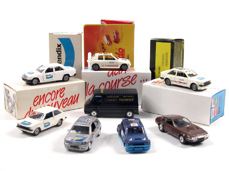 miniatures reproduisant les modèles : RENAULT, CITROËN, PEUGEOT, FORD, MERCEDES & FERRARI - un modèle de la marque VEREM & un autre avec une boîte en état 'c'