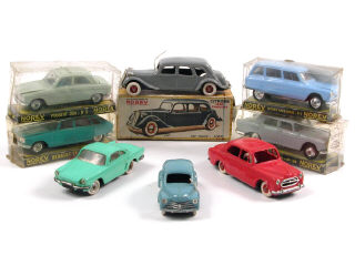 états de 'B' à 'E' - miniatures reproduisant les modèles : RENAULT, PEUGEOT & CITROËN - 5 voitures avec boîte - quelques petits manques