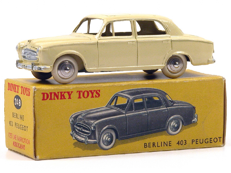 DINKY TOYS (FRANCE) 24B PEUGEOT 403 (version sans vitre & avec jantes convexes) jaune pâle