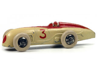 DINKY TOYS (GB) 23A Auto de course crème avec disque & filet central rouge tomate