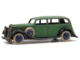première version de 1935-38 avec calandre à quadrillée 'egg box' & roue de secours sur le flanc gauche - petites traces de métal fatigue sur les jantes & le châssis (légère déformation avec 2 cassures sur la partie arrière) - petits manques sur l'extrémité de l'aile arrière gauche
