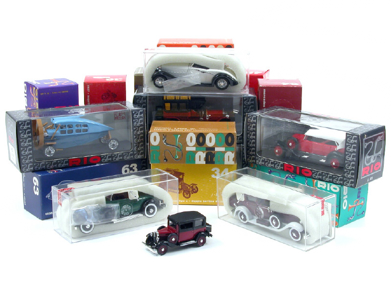 miniatures reproduisant les modèles : FIAT, LEYA, MERCEDES, HISPANO-SUIZA, BUGATTI, LINCOLN, CADILLAC, DELAHAYE, ISOTTA- FRASCHINI, RENAULT & ALFA ROMEO