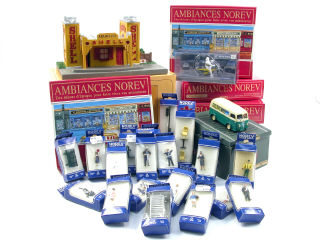 NOREV (FRANCE) Ensemble de 5 façades, une moto, un utilitaire, une station-service, 14 personnages & 6 accessoires