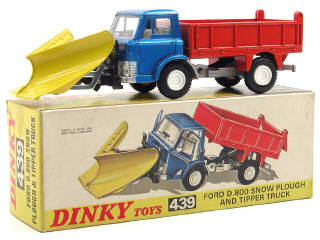 DINKY TOYS (GB) 439 FORD D 800 Chasse-neige & benne basculante bleu métal, orange & jaune