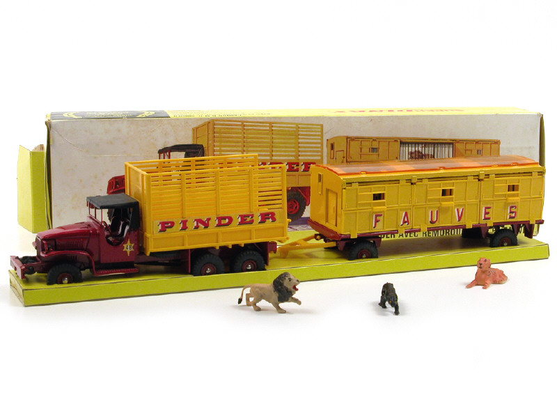 DINKY TOYS (FRANCE) 881 GMC 'PINDER' avec remorque-cage à fauves rouge & jaune
