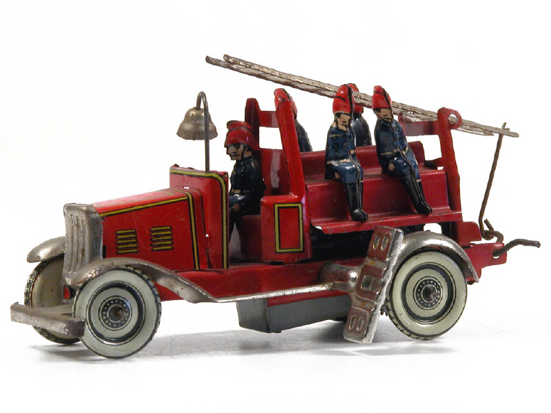 longueur 11,5 cm - moteur à clef (à revoir) - avec clef & 5 pompiers - petites traces d'oxydation