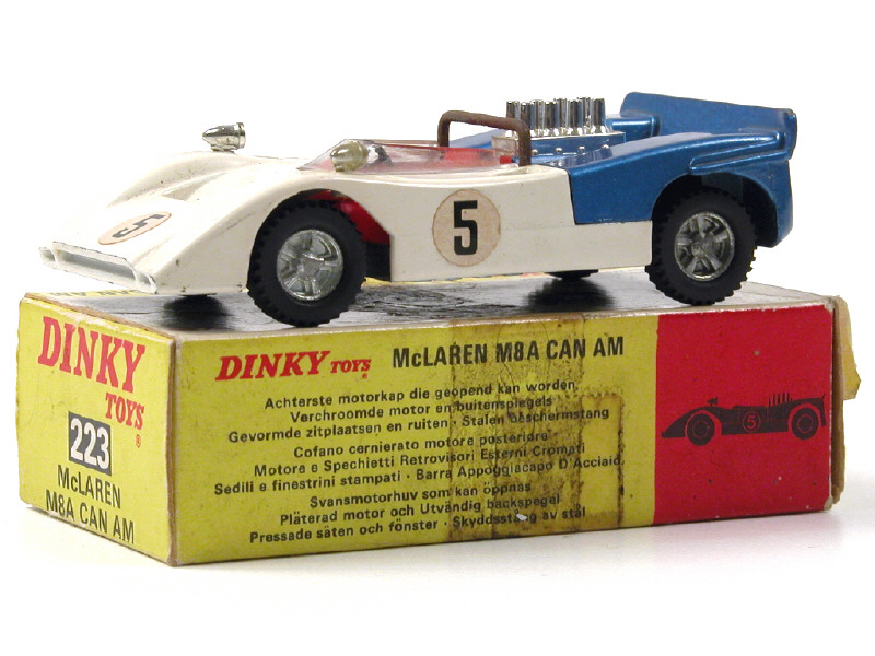 DINKY TOYS (GB) 223 Mc LAREN M8A CAN-AM blanc & bleu métal