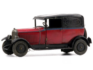 longueur 39 cm - moteur à clef (fonctionne) - échelle 1/10ème - grand pare-soleil - manque support de pile - quelques petites traces d'oxydation - cette camionnette présente des panneaux latéraux tôlés avec parties ovoïdes en relief permettant de recevoir une publicité & un hayon arrière s'ouvrant en 2 parties - en accord avec Clive Lamming, auteur bien connu du livre "LES JOUETS CITROËN", nous pouvons en déduire que cette pièce est une transformation d'époque vraisemblablement réalisée dans les années 40-50, à la manière de l'autocar CITROËN ou de la camionnette à caisse rehaussée - ces modèles sont tellement bien réalisés, patinés, vieillis, que l'on s'y laisserait prendre sans vigilance, si l'on ne savait pas que CITROËN proposait surtout des versions commerciales sur des voitures plus économiques et moins performantes que la C6, comme le type C4 par exemple - TRES BELLE REALISATION !
