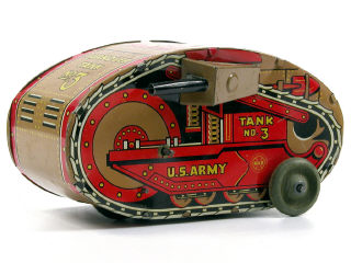 longueur 20 cm - moteur à ressort (fonctionne) - quelques petits enfoncements - manque un canon latéral