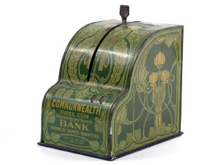 AMERICAN CAN CO (USA) COMMONWEALTH Tirelire en forme de caisse-enregistreuse vert