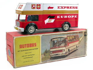 JOUSTRA (FRANCE) 606 BERLIET Fourgon avec capucine 'EXPRESS EUROPE' rouge, blanc & marron