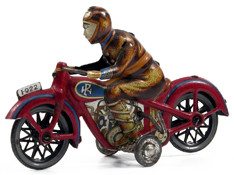 PAYA (ESPAGNE) I-922 Motocyclette avec pilote en tôle lithographiée rouge & marron