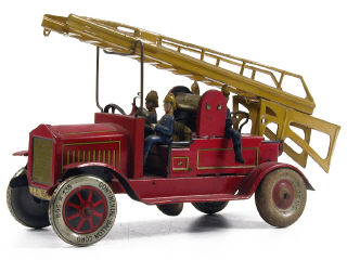 longueur 29 cm - bruiteur - manque 2 pompiers & moteur - 2 roues non conformes - petites traces d'oxydation