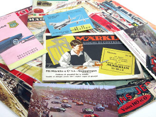on y retrouve les marques : MÄRKLIN, CIRCUIT 24 & JEP - 3 exemplaires en état 'c' - on y joint un dépliant sur les maquettes HELLER & un autre de la RENAULT FLORIDE téléguidée de la marque FRANCE JOUETS