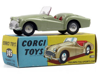 CORGI TOYS (GB) 305 TRIUMPH TR3 vert tilleul métal, sièges tomate
