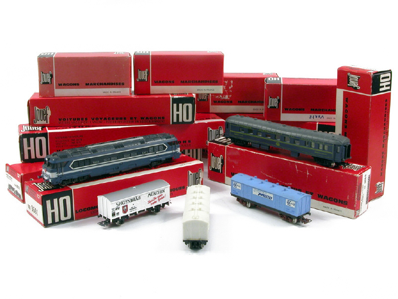 JOUEF 'HO' (FRANCE) Ensemble d'une motrice, une locomotive, 4 voitures de voyageurs & 9 wagons