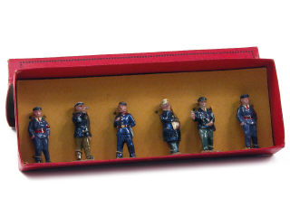 contient 6 figurines en plomb creux - avec ficelle de maintien & cale d'origine - traces d'humidité sur la boîte