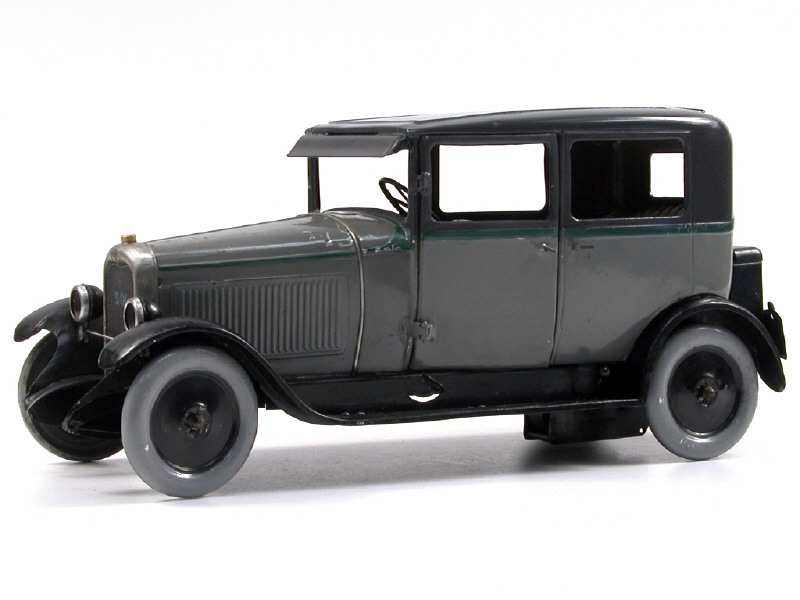 longueur 40 cm - moteur à clef (fonctionne) - échelle 1/10ème - version de 1928-1929 avec grand pare-soleil & phares non électriques - parties repeintes - bouchon de radiateur non d'origine - TRES BEL ASPECT GENERAL POUR UN MODELE DE CETTE EPOQUE !