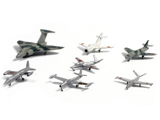 états de 'C' à 'D' - comprend : TRIDENT (traces de métal fatigue avec petit manque sur une aile), FOUGA-MAGISTER, JAVELIN, HAWKER HUNTER, THUNDERJET & MIG 15 - on y joint un FOUGA-MAGISTER de la marque C.I.J.