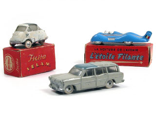 états de 'D' à 'E' - comprend : une SIMCA MARLY, une ISETTA VELAM & une RENAULT ETOILE FILANTE - 2 modèles avec boîte - includes the aforementioned models - 2 models in box