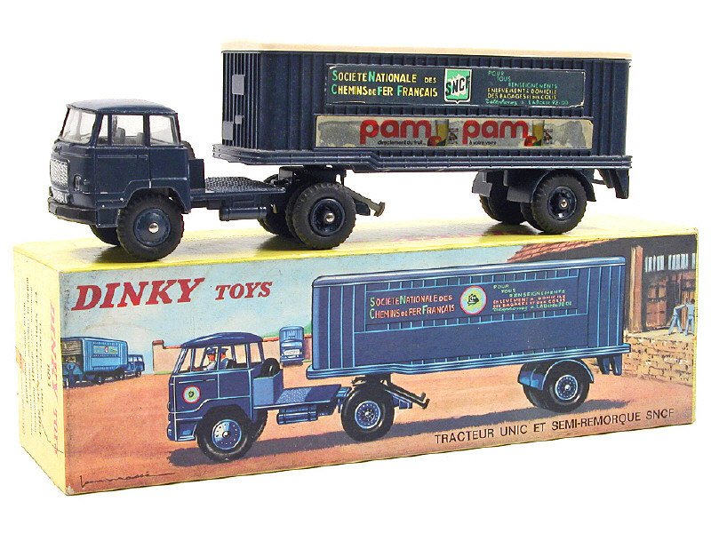 DINKY TOYS (FRANCE) 803 UNIC Semi-remorque 'S.N.C.F PAM PAM' bleu foncé, toit crème