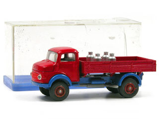 VILMER (DANEMARK) MERCEDES 1113 Plateau à ridelles basses 2 tons de rouge & bleu