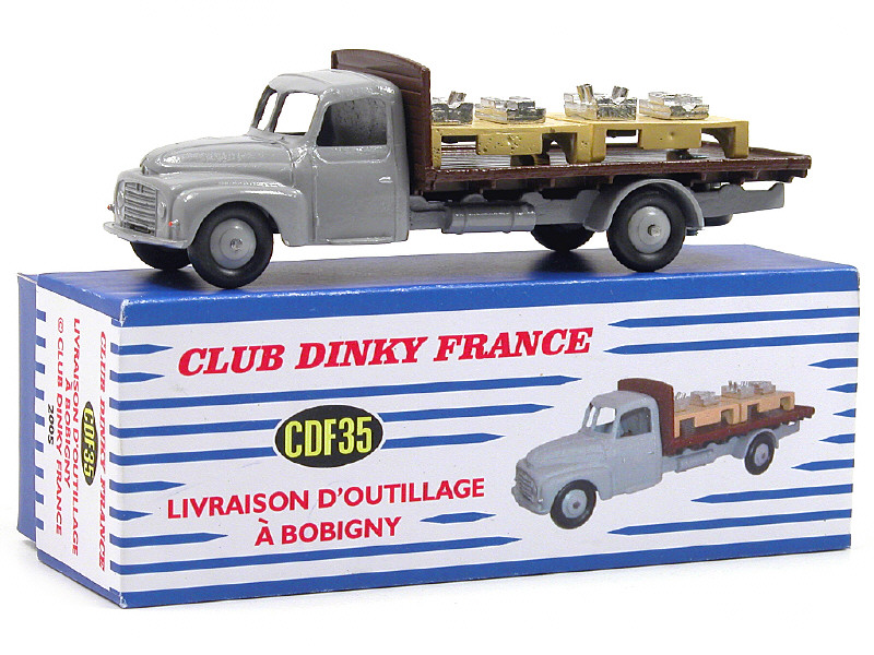 surmoulage modifié de la référence 35A de DINKY TOYS France - ce modèle a été fabriqué pour les membres du club - avec plaque fixée sur le châssis 'CDF 35-2005 LIVRAISON D'OUTILLAGE' & 2 palettes amovibles portant chacune un moule